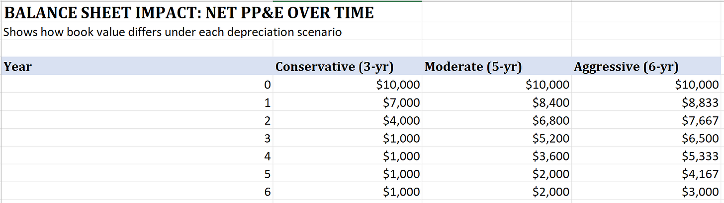 To understand this debate, I used Claude Opus 4.5 to build a toy financial model that shows how depreciation choices affect valuation. The model is discussed throughout this post. Paid subscribers can download the model and use it for their own analyses.
